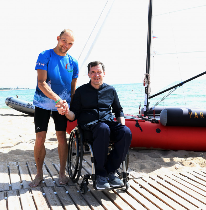 В такой опытной компании новичкам сложно проявить себя. Одним из тех, кто первый раз попробовал свои силы на нынешнем фестивале, стал Геннадий Кулигин из города Дзержинск Нижегородской области. На протяжении последних лет он активно проявлял себя в ряде крупных мероприятиях Нижегородской областной организации ВОИ – автопробеге «Александр Невский - знамя наших побед», этапе международной экспедиции «По пути Рюрика» в рамках проекта РССИ «Под парусами Надежды», стал сертифицированным консультантом-организатором интерактивных занятий по пониманию инвалидности в образовательных организациях. Заметив его заинтересованность, заместитель председателя НОО ВОИ Анастасия Макарова, завоевавшая бронзу в пауэрлифтинге на нынешнем фестивале, предложила ему войти в состав областной спортивной команды. Кулигин с радостью принял предложение, но подошел к нему очень ответственно. Собираясь выступать на фестивале в дартсе и настольном теннисе, он на протяжении всего лета оттачивал свое мастерство в этих дисциплинах. Но уровня своих соперников, конечно, не представлял, поэтому воплотить в жизнь известный девиз: «Пришел, увидел, победил» в этом году Геннадию не удалось... Но лиха беда – начало! «Опыта и спортивного мастерства я на этом фестивале набрался и теперь сам готов передавать свои навыки новичкам», - говорит спортсмен. Теперь, после окончания соревнований, у Геннадия Кулигина и его товарищей появилось время для участия в мастер-классах. Сегодня он посетил бассейн, где принял участие в мастер-классе по парадайвингу, который проводят инструкторы из анапского дайв-клуба «Аква-Глобус».