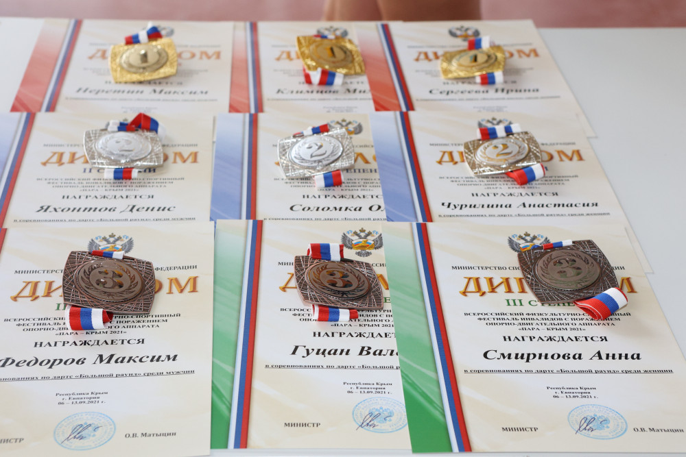 10 сентября особенно насыщенной оказалась церемония награждения. Заслуженные медали получили не только сегодняшние победители, но и герои вчерашнего дня - участники состязаний по плаванию, дартсу, настольному теннису и мужскому пауэрлифтингу.