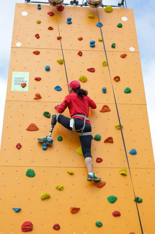 Здесь спортсменов радушно встречал заместитель главного судьи Юрий Борисов. Трасса не считается сложной, класс I, длина 57 метров, суммарный перепад высот 40 метров, крутизна около 70 градусов. На трассе четыре этапа: подъем в два этапа, траверс и спуск. Несмотря на то, что соревнования на скорость, спешить здесь все же не стоит. То ли дело слышны крики: "Камни!". «Ни за что! – сверкает улыбкой волонтер Джоман, двухметровый чернокожий парень из Кот-д’Ивуара, студент БашГу – ни за что и никогда я бы не залез на эту гору! – и тут же посерьезнев говорит, - я считаю, что все эти люди, они все герои!