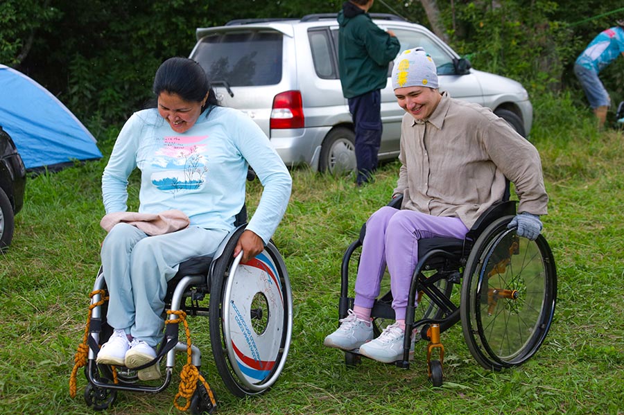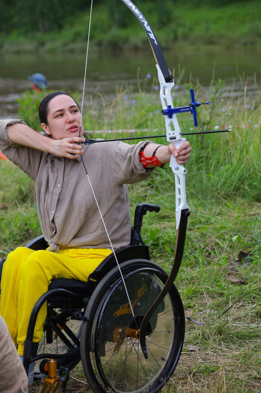 Здесь ответственный за соревнования заместитель главного судьи Сергей Пивень. Соревнования проходят в личном зачете. Общая длина 500 м, класс дистанции – второй. Дистанция на колясках включает в себя два этапа: фигурное вождение (езда по кругу, ворота, зиг-заг, змейка и стоп-линия) и туристский триал (бревно, лабиринт, ров и подъем). «Нацелен на победу, надеюсь войти в тройку лидеров!» – говорит Андрей Мелюх из Санкт-Петербурга, спортсмен приехал один, без сопровождающего, здесь его под крыло взяли Оренбуржцы.