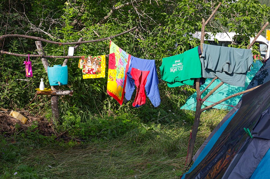 День выдался облачным, пасмурным, но не дождливым. Дымят на берегу баньки, спортсмены спешат на соревнования. Остались не пройденными горная и водная дистанции.